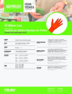 Ficha Técnica de Guante de Nitrilo sin Polvo naranja 8.0