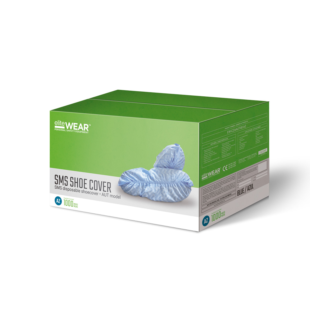 EW-CZAAUT40-AZ Cubrezapato Antiderrapante SMS EliteWear 40 gms/cm2 Azul Caja 1000 pzs