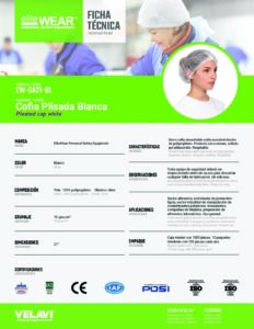 | EW-GA21-BL | Gorro Cofia Acordéon 21" | EliteWear | Polipropileno | 21" | Blanco | Caja 1000 pzs |